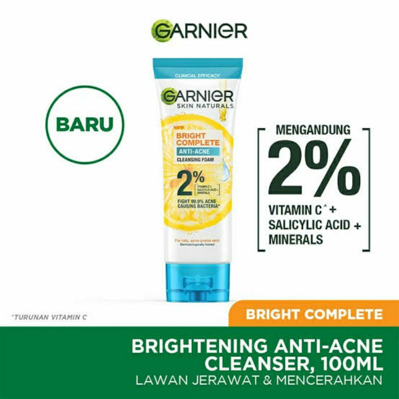 Masalah kulit berjerawat memang sering di alami banyak orang dan menjadi hal yang menyebalkan. Oleh karena itu, Garnier mencoba menghadirkan face wash untuk kulit berjerawat yaitu Garnier Bright Complete Anti Acne Face Wash. Produk ini mengandung Anti Acne pertama dari Garnier dengan kandungan Vitamin C dan Salicylic Acid. Tidak hanya untuk masalah berjerawat, Face Wasah Garnier Bright Complete cocok untuk jenis kulit berminyak. Selain itu, manfaat lainnya pun bisa mencerahkan kulit kusam, mengatasi bakteri penyebab jerawat dan membersihkan pori – pori secara menyeluruh.