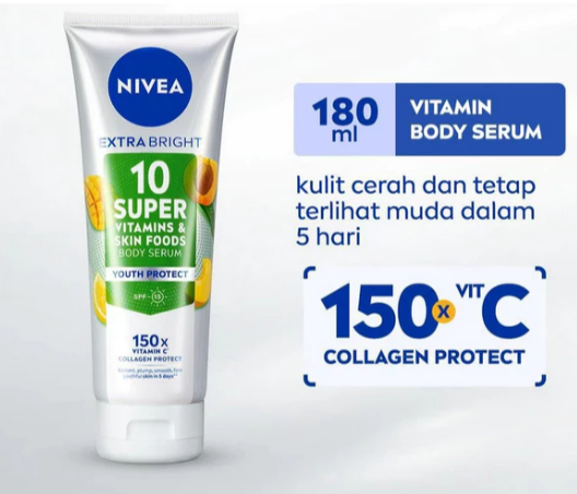 NIVEA Body Serum Extra Bright 10 Super Vitamins & Skin Foods Youth Protect Collagen 180ml