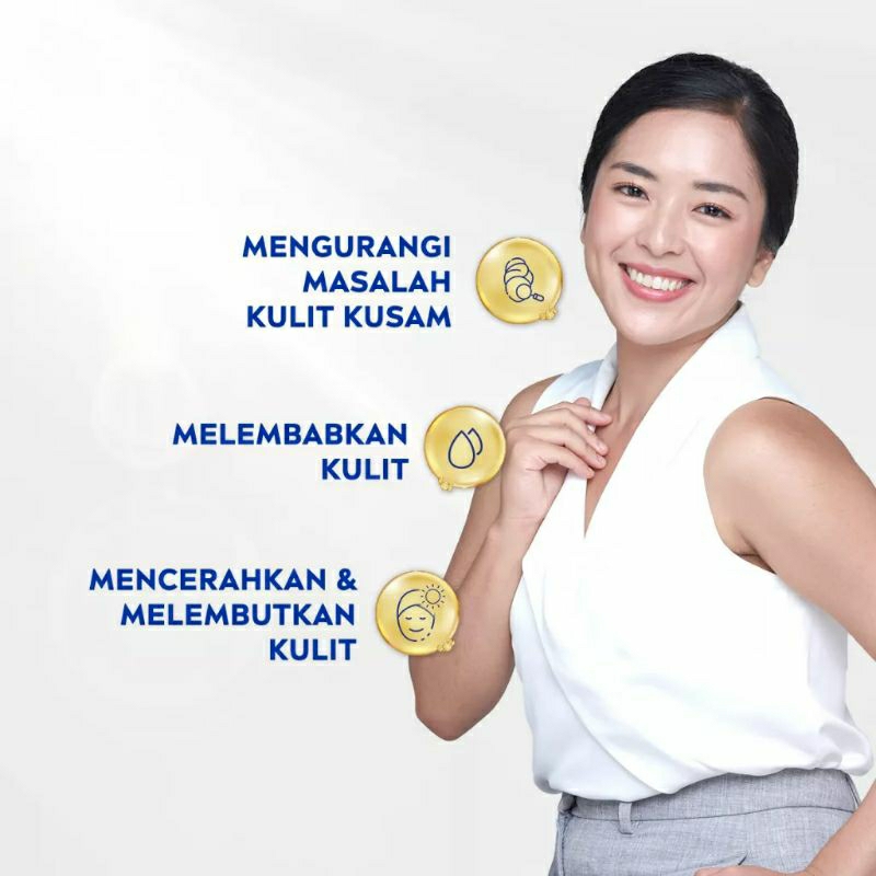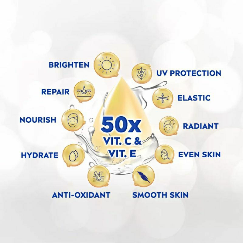 Untuk Kulit terlihat cerah bercahaya dan kenyal dalam 7 hari* dengan 50x Vitamin C membantu mencerahkan kulit dan Vitamin E untuk melembapkan kulit.